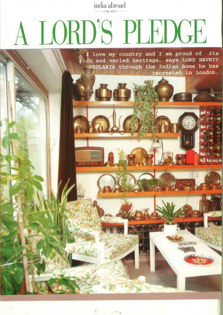 “I love my country and I am proud of its rich and varied heritage,” says LORD NAVNIT DHOLAKIA through the Indian home he has recreated in London.
