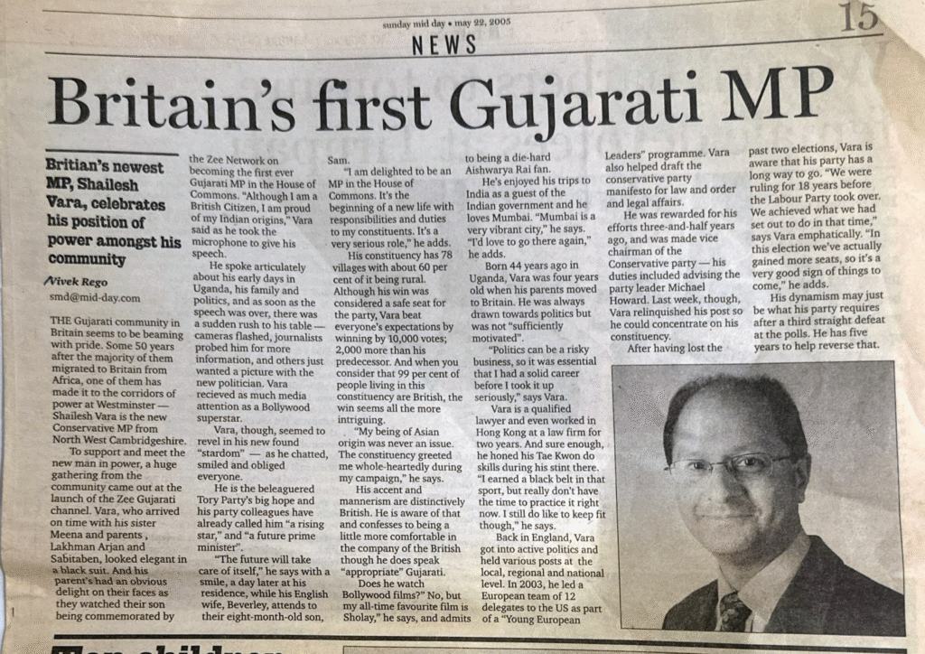 Britain’s newest MP, Shailesh Vara, celebrates his position of power amongst his community
