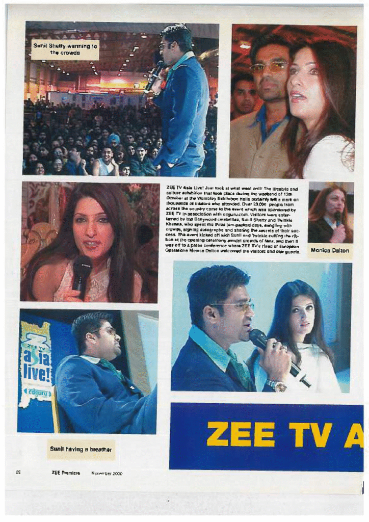 Just look at what went on! The lifestyle and culture exhibition that took place during the weekend of 13th October at the Wembley Exhibition Hall left its mark on thousands of visitors who attended. Over 20,000 people from across the country came to the show, which was sponsored by ZEE TV in association with Khushic.com. Visitors were entertained by top Bollywood celebrities, Sunil Shetty and Twinkle Khanna, who spent the time interacting, signing autographs and sharing the stage with live acts. The event kicked off with Sunil and Twinkle cutting the ribbon at the opening ceremony and crowds of excited fans were off to a press conference where ZEE TV’s Head of European Operations, Monica Dalton welcomed the visitors and star guests.