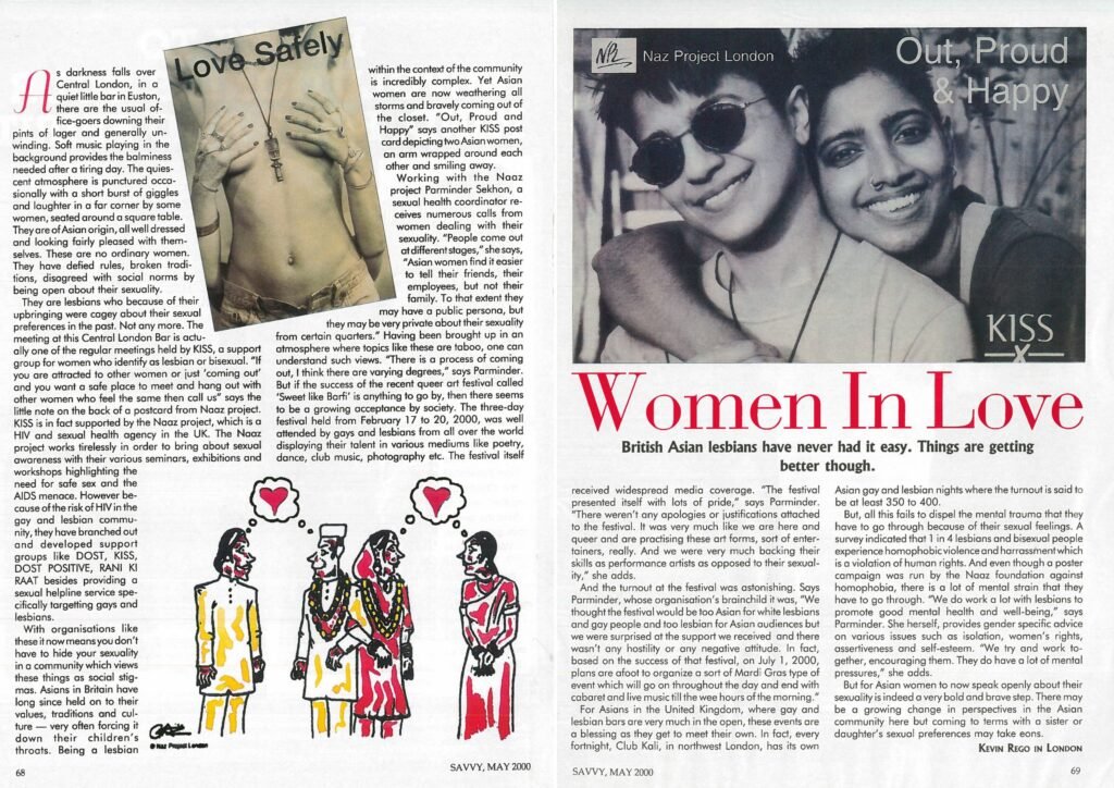 Tania, a volunteer who works there who manages in the Asian women’s gay context knows you don’t see things as social systems do. Asians in Britain are bound to stick to the values, traditions of their culture — very often forcing it down their children’s throats. Being a lesbian within the context of the community is incredibly complex. Yet Asian women are now weathering it all and bravely coming out of the closet. “Out, Proud and Happy” says another KISS poster card depicting two Asian women wrapped around each other.